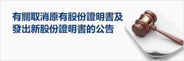 有關取消原有股份證明書及發出新股份證明書的公告