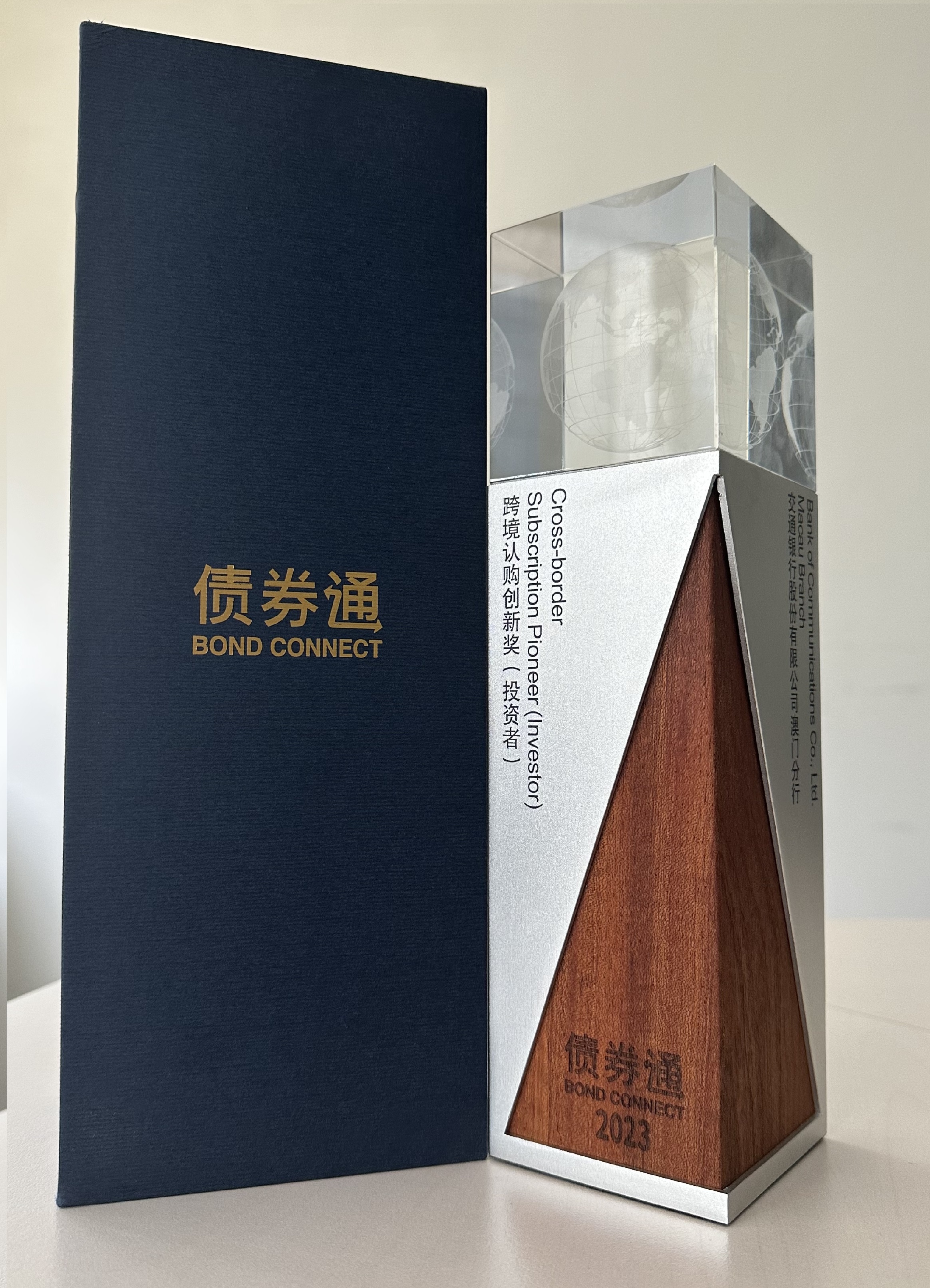 2023年7月4日,債券通週年論壇成功舉辦,以慶祝債券通開通六週年,之後債券通公司公佈了2023年度債券通評獎結果,交通銀行澳門分行因積極、高效配合債券通公司「新債易」(ePrime)產品推廣,榮獲「跨境認購創新獎(投資者)」。債券通的開通是人民幣國際化進程的新時代標誌性成果,也為擴大中國債券市場高水平對外開放持續注入新的活力和能量。